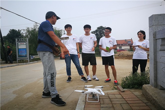 上午七点半,老师带领团队成员依次来到小秦家村、黑顶于家村、下林庄村,对当地的河道进行实地调研。队员们根据村落纵横断面经纬坐标资料,确认了现场纵横断面位置,并分析断面布设的合理性、横断面测量能否反应河道形状等。对于原纵横断面布设测量不合理、近期发生较大改变或未测量纵横断面情况,按照《山洪灾害调查技术要求》进行重新测量断面。在测量阶段,队员分成三队,一支队伍利用RTK记录了经纬度、高程,测量了河道断面;另两支队伍是无人机组,队员们跟随老师学习无人机操作原理,通过拍下的河道图片,经过后期处理,来解决河道是否有淤积、垃圾,排水口的位置,周围树木情况,以及排水涵路等问题。