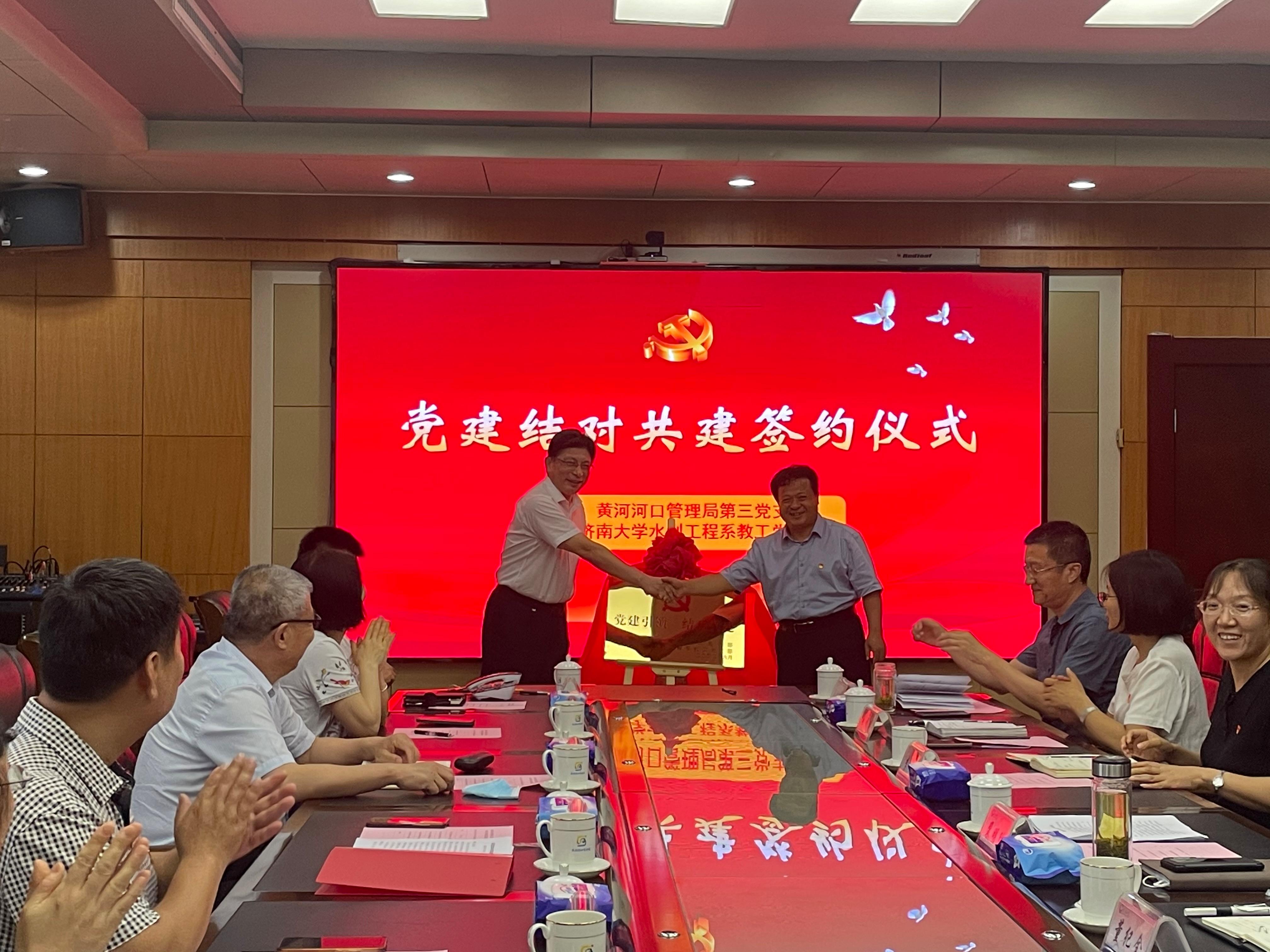 黄河河口管理局第三党支部与9728太阳集团水利工程系教工党支部开展共建签约揭牌仪式。本次共建坚持“资源共享、优势互补、协同发展”的原则,旨在进一步提升党支部组织力,强化党支部政治功能,努力构建“开放、联动、融合”的基层党建工作新格局。通过共建共享,互助互促,找准共建着力点,打造过硬党支部,提升党支部服务保障、引领发展能力,为推动黄河流域生态保护与高质量发展贡献力量。