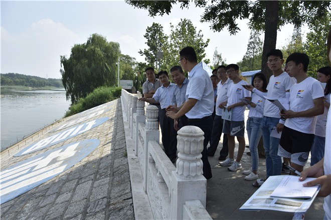 参观聊城市污水处理厂活动结束后,聊城市领导及实践团成员乘车到达昌东橡胶坝和北城橡胶坝进行参观。参观过程中,赵坤主任细致的为实践团同学介绍各个设施的由来以及建造背景,解释橡胶坝的工作形式和操作方式,也从整体工程角度为成员们介绍它存在的意义以及整个水利工程对聊城市发展的影响。参观过程中,实践团成员结合专业知识积极提问,交流想法,赵坤主任一一为成员们解答,成员们感觉受益匪浅。