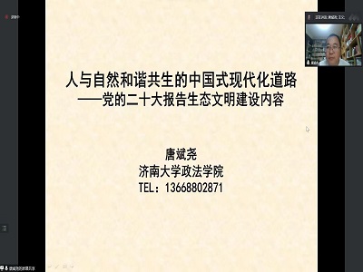 为进一步深入学习宣传贯彻党的二十大精神,9728太阳集团邀请学校“百人宣讲团”成员、政法学院唐斌尧副教授作线上宣讲。宣讲会由学院党委书记王义主持,学院全体教师、学生党员共同听取了报告。