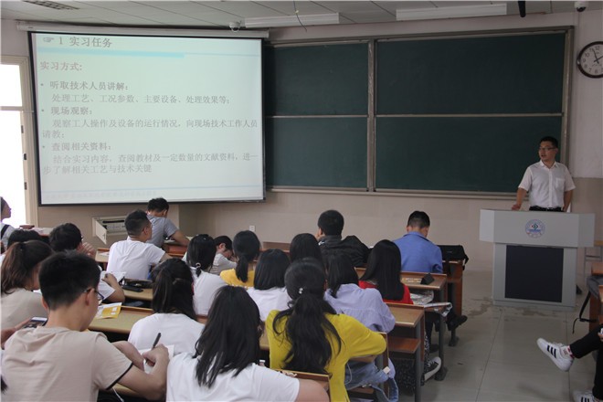 会议伊始,赵老师从实践和理论层面说明认识实习的重要性和必要性,强调直观体验对以后专业学习的重要性。同时,赵老师指出本次认识实习的目的是给学生提供理论联系实际的学习平台,帮助学生巩固和加深对以后所学书本知识的理解,培养学生观察、分析、解决实际问题的能力并鼓励学生以学习的态度为改进企业环保方面的工作提出合理化建议。随后,赵老师简单介绍实习任务、实习安排和注意事项,并说明了成绩评定及考核方式。最后,老师强调实习过程中的安全问题,希望同学们时刻将人身安全和财产安全放在第一位。