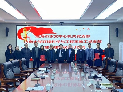双方进行了“党建+业务”共建签约仪式,签署了“太阳成集团tyc9728环境科学与工程系教工党支部和威海市水文中心机关党支部党建共建协议”。