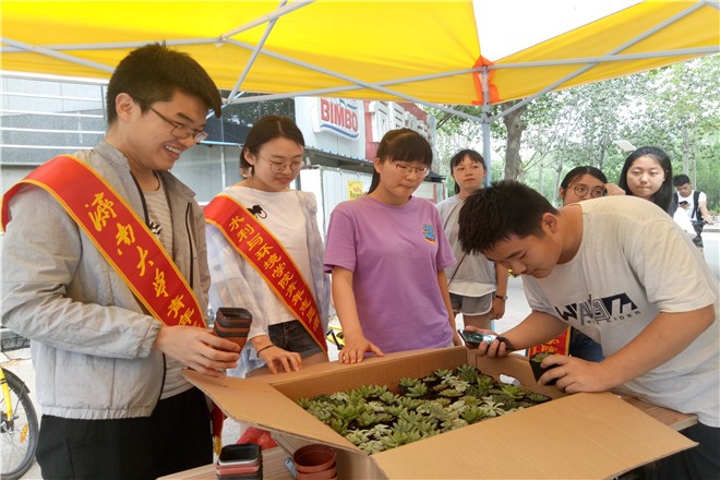在世界环境日来临之际,为了传递环保理念,积极响应6.5世界环境日主题,鼓励大学生亲身参与绿色植物种植行动,积极唤醒全国大学生环保意识,6月2日上午十时,9728太阳集团青年志愿者协会在八食广场开展“生态创建携手共进,绿色生活你我同行”绿植领养活动。
