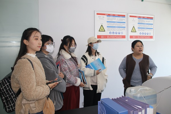 随后,公司人力行政总监侯秀贞、环境检测部经理刘敏就岗位招聘及业务工作等向在场毕业生进行了详细介绍,并与毕业生互动交流,多名学生现场有意应聘,并参加了公司组织的面试。我校校友、信息化部经理张腾腾分享了自己在企业的成长体会。会后,学院一行参观了公司检验检测实验室。