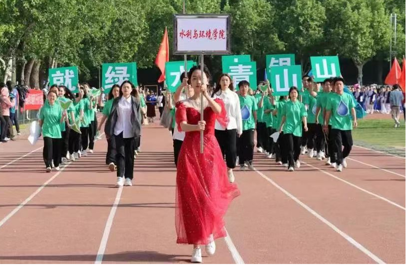 运动会开幕式上,学院学生代表队全体运动员身着绿色院服,气宇轩昂,步伐整齐,口号响亮,展现出水环学子朝气蓬勃、昂扬向上的精神风貌,主席台前,运动员们手举“绿水青山就是金山银山”的鲜明标语,展现学子们致力于推动国家生态文明建设的崇高理想。赛场上,运动员们英姿飒爽、全力争先,留下了许多精彩瞬间和青春剪影。观众席上掌声雷动,呐喊声、加油声此起彼伏,极大地鼓舞了运动员们的士气。学院学生组织志愿者们布置现场、搬运物资、搀扶送水、拍照摄影,奔走于赛前赛后,为运动员们顺利参赛提供保障。