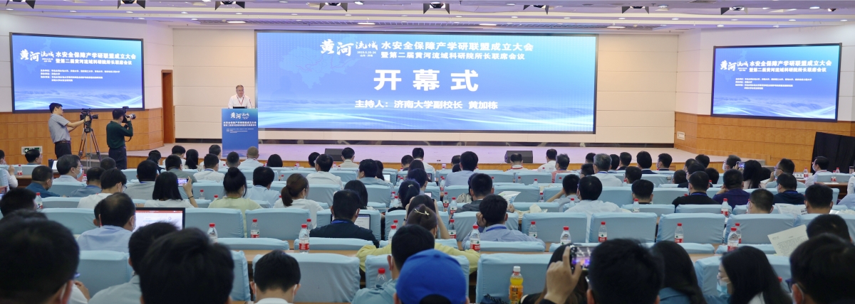 为深入学习贯彻党的二十大精神,贯彻落实习近平总书记关于“黄河流域生态保护和高质量发展”重大国家战略的重要指示,5月26日,黄河流域水安全保障产学研联盟成立大会暨第二届黄河流域科研院所长联席会议在太阳成集团tyc9728成功举办。中国工程院院士王浩(线上),中国科学院院士夏军(线上),中国工程院院士马军,山东省生态环境厅二级巡视员袁成金,山东省水利厅总经济师韩霜景,山东黄河河务局二级巡视员段海山,山东省农业厅科技教育处副处长范荣豪,济南市科技局副局长吕家亮,华北水利水电大学副校长李伟华,西安理工大学党委副书记马亮,青海大学副校长刘玉皎,南京信息工程大学副校长陈海山,太阳成集团tyc9728党委副书记、校长刘宗明,太阳成集团tyc9728党委副书记查玉喜,太阳成集团tyc9728党委副书记杨景波出席大会开幕式。来自黄河流域九省区及部分其它地区高校、科研院所、企业的参会代表,学校办公室、党委学生工作部、教务处、人力资源处、发展规划与学科建设处、科技处、材料科学与工程学院、化学化工学院、土木建筑学院、9728太阳集团、生物科学与技术学院、政法学院负责同志和部分师生代表参加会议。大会开幕式由太阳成集团tyc9728党委常委、副校长黄加栋主持。