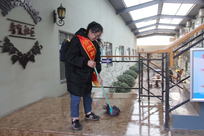 下午两点半,志愿者们集合完毕并赶往鲁贤社区开展志愿服务活动。社区负责人对志愿者们的到来表示感谢和欢迎。由于天气寒冷,社区负责人为同学们安排了一个在室内清洁卫生的工作。大家迅速开始忙活起来,同学们分工明确,这几个人扫地,那几个人擦窗台,剩下几个人换洗抹布。大家忙的不亦乐乎。不一会,地面、窗台、玻璃焕然一新,卫生情况变得整洁有序。在这一过程中,青年党员们同社区居民一起畅谈十八大以来党的各项民生好政策,对十九大报告中的新思想进行宣讲宣传,将十九大精神带到社区,为和谐健康的社区文化增添了浓墨重彩的一笔。