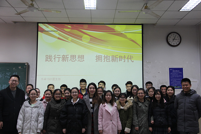 为响应党的十九大号召,贯彻落实党的十九大精神。12月28日下午,资源与环境学院水卓1501班团支部于一教108开展“践行新思想 拥抱新时代”组织生活会。校团委王娜老师、学院团委指导老师白健、班主任边振老师到场与会。