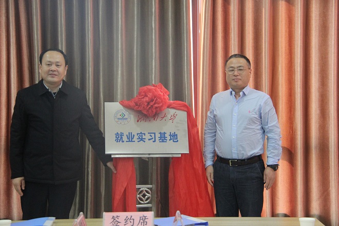 最后,资源与环境学院院长徐征和与乐陵市铁营镇党委书记、循环经济示范园党工委书记李涛签署共建就业实习基地合作协议,太阳成集团tyc9728教务处处长黄加栋与乐陵市人民政府副市长殷宗锋共同为就业实习基地揭牌。