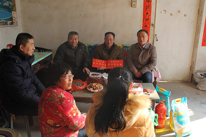 为深入了解家庭经济困难学生实际情况,真正将温暖和关爱送到学生身边,加强学院资助育人工作,帮助学生健康顺利成长,1月24日,资源与环境学院院长徐征和带队,党委副书记、副院长侯启海,环境科学与工程系主任赵春辉老师,学办辅导员老师参加,教务处处长黄加栋全程跟随指导,走访慰问了困难生王同学一家,为他们送去了慰问品以及全院师生的问候和新春的祝福。