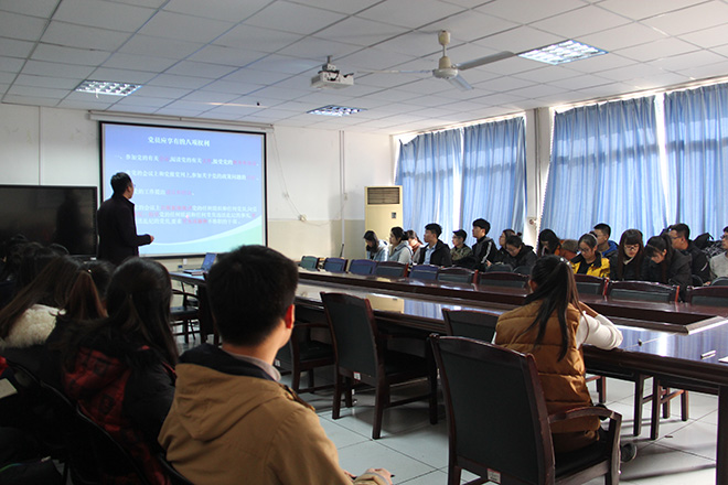 11月28日中午,资源与环境学院入党积极分子培训班第六讲在九教301顺利开讲。资源与环境学院2016级辅导员、地理科学与规划系学生党支部书记白健老师为入党积极分子作“党员权利与义务”主题报告。