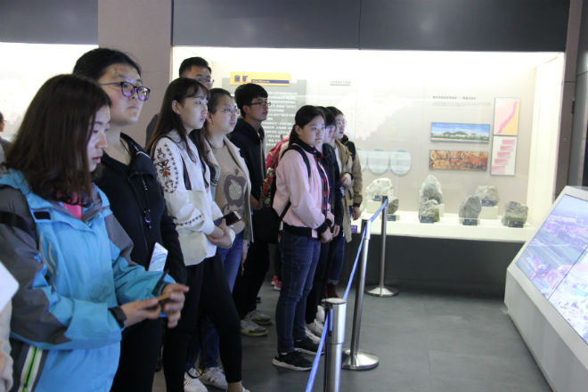 仪式结束后,参加仪式的领导与师生共同参观了山东省地质博物馆,博物馆内品类齐全的岩石、矿物、标本以及形象生动的沙盘模型都让老师同学们称赞不绝。