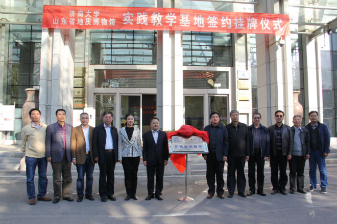 仪式上,测绘地理信息局局长赵培金代表山东省国土资源厅对于教学实践基地的建立表示热烈祝贺。他指出,山东省地质博物馆作为综合性地质专业博物馆,为同学们学习专业知识、开阔视野提供了宝贵的实践场地,此次实践基地的建立是学校教育与社会教育的有机结合,为省地质博物馆与太阳成集团tyc9728的合作交流搭建了良好的平台,相信通过馆校双方共同努力,实践教学基地各项工作一定能做出特色,做出实效。