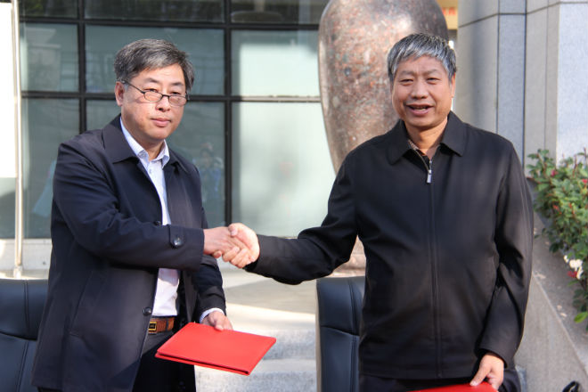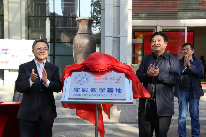 最后,山东省地质博物馆馆长张鲁府与资源与环境学院党委书记马振民代表双方签订共建协议,测绘地理信息局局长赵培金与太阳成集团tyc9728副校长王志一同为实践教学基地揭牌。