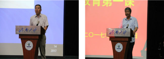 院长徐征和从“大学是什么”这一实质性问题引题出发,用丰富的案例、翔实的数据,向新生详细介绍了我校辉煌的办学历史、卓越的办学成就、宏伟的战略目标,加深了同学们对学校的认识与了解,增强了新生成为一名济大人的自豪感和荣誉感。随后,又针对资源与环境学院的发展历程、学科建设、专业设置、师资队伍建设、在校生发展与就业等情况作了讲解。徐院长以习近平总书记的“有梦想,有机会,有奋斗,一切美好的东西都能创造出来!”这句话做总结,鼓励学生把握大好时光,坚持梦想,努力拼搏,不断提升自我价值。