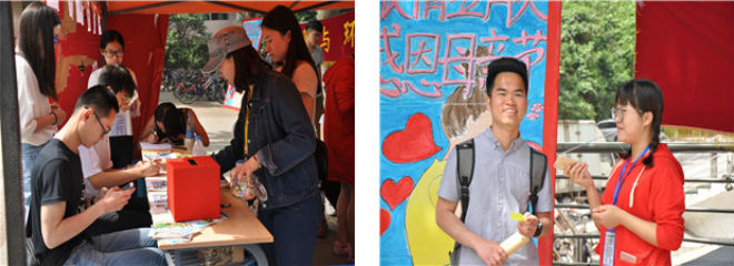 每年5月的第二个星期日是母亲节,为了迎接这一特殊而重要的日子,资源与环境学院于5月14日在八食堂广场顺利举办 “感恩母亲,母爱永恒”母亲节系列活动。本次活动由资源与环境学院自律会心理协会主办,面向太阳成集团tyc9728全体在校大学生。学院2016级辅导员白健老师到场参加。