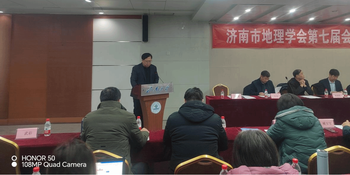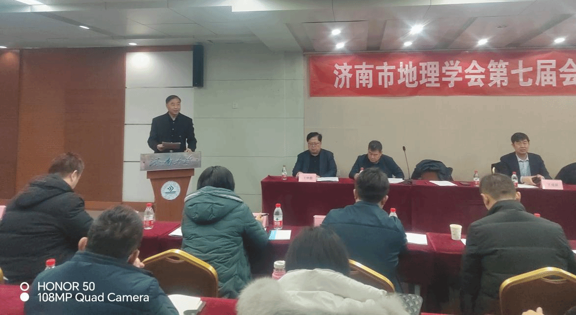 王成新教授代表山东地理学会充分肯定了济南地理学会在济南市乃至山东省地理事业发展的重要地位,表示济南地理学会近年来在地理学术交流、地理科学普及、人才培养和地理教学发展等方面成绩显著、成果斐然。他殷切期望济南地理学会未来能够顺利开展工作,为地理学发展提供新动能。