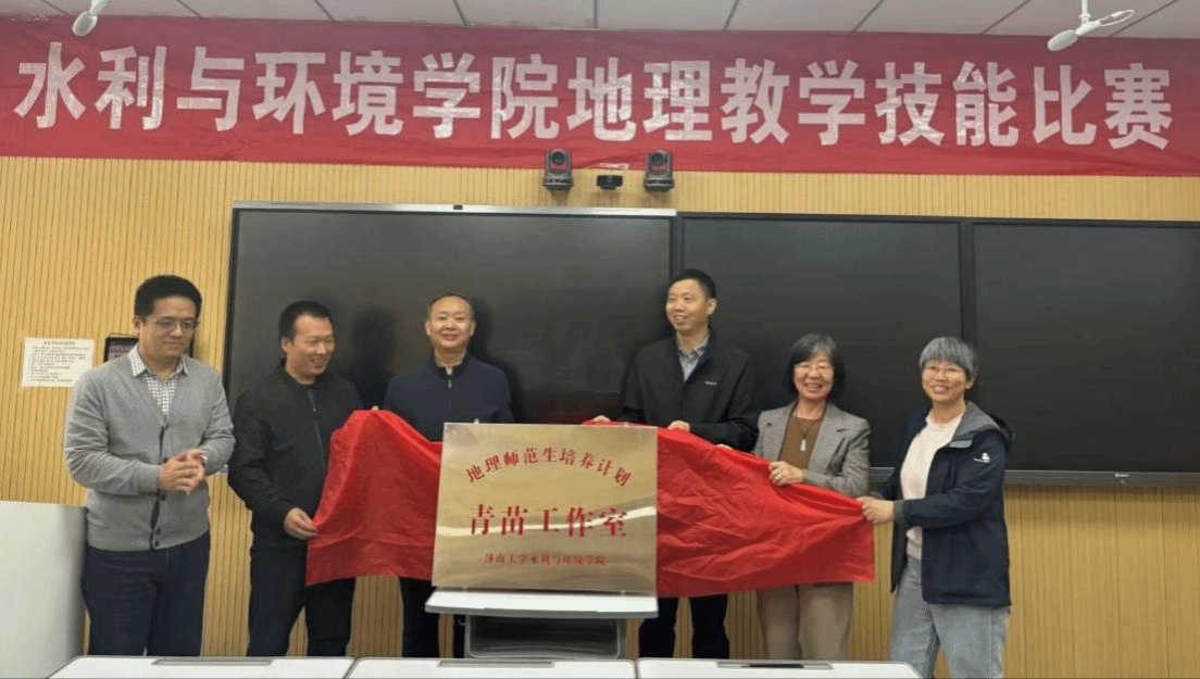 赛后,学院副院长庞桂斌主持了9728太阳集团"青苗工作室"揭牌仪式。青苗工作室将作为地理师范生教学能力提升的重要平台,通过名师指导、教学研讨、技能培训等方式,全方位提升同学们的教学素养,助力师范生成长。
