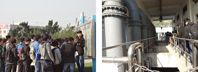 此次专业实践活动意义重大,任务艰巨,受到了资源与环境学院全体专业老师的高度重视,同学们在出发前做好了充分的准备。上午八时整,参加专业实践的全体师生在我校新西门集合集体出发,于九点到达实践基地。实践期间,光大水务二厂的解说人员首先向大家介绍了光大水务有限公司的概况,并就本厂的工艺流程图给大家做出重点讲解。他指出,本厂负责处理济南市70%的生活废水,设计处理规模为20万立方米/日,在济南市的节能减排工作和水环境保护工作中发挥着重要的作用。接着,同学们在解说人员的带领下参观了整套废水处理设备,按照废水处理流程,了解了螺旋输送机、栅渣压实机等机器的构造和用途,见识了污泥脱水车间、污泥回流泵房和生物反应池的规模,掌握了离心脱水发和钟式沉沙法等污水处理的基本方法。最后,同学们与工厂员工进行亲切交流,就自己未知的实践知识提出问题并得到他们的热切回答。此次专业实践让同学们从教室走向工厂,把理论性的污染处置知识与实际处置流程结合起来,加强了专业实践能力。