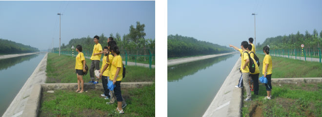 为考察我市河流的水质状况, 7月11日下午,顶着炎炎烈日,资源与环境学院暑期实践团一行到达平安镇的南水北调工程段进行实地探访。