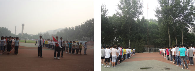 此次升旗仪式包括升国旗和和国旗下爱国主义教育两个环节。上午7时,升旗仪式正式开始。三名护旗手穿戴整齐,迎着盛夏的朝阳,迈着矫健的步伐,护送国旗至旗杆下。随后全体同学开始奏唱国歌,大家庄严肃立,精神饱满,注视着鲜艳的五星红旗冉冉升起,从心底涌出一股民族自豪感和责任心。接着,王建军同学进行了催人奋进的国旗下演讲:《当代青年学生的爱国情怀》。他讲到,和平年代里爱国主义教育不能被忽视,我们该继承和发扬崇高的爱国主义,从爱校做起,从身边的小事做起,努力学习,在21世纪的征程上将爱国落到实处。至此升旗仪式结束。11级同学们都表示这是进入大学后第一次参加升旗仪式,他们内心汹涌澎湃,满怀豪情,国旗下的爱国主义教育激励了他们努力学习,奋发向上的斗志。