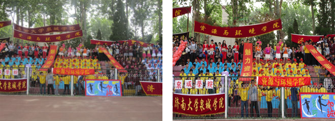 运动会还未开始,资源与环境学院的观众及啦啦队已早早的出现在观众台上。他们整理着装,演练舞步,企盼着激动人心的时刻的到来。黄色的观众方阵,彰显出大学生的活力无限;粉白相间的啦啦队,彰显着大学生的青春动感。比赛还未正式开始,场上已散发出浓烈的比赛气息,观众及啦啦队已按捺不住热情展开了助威阵势。运动员飞驰而过,田径场上纵身跳跃,每个精彩瞬间,都会博得观众的阵阵喝彩,“魅力资环,创造非凡”喊声中充满了信任、祝福与期待。在他们齐声欢呼下,运动员也仿佛充满了力量,表现的更加出色。每一个观看者也同样被他们的热情与活力感染着。