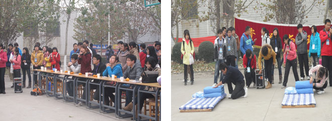 为了进一步创建和谐文明宿舍,培养11级新生良好的生活习惯,我院于11月27日早上8点半在南院篮球场举办了11级新生叠军被大赛。出席本次大赛的评委有资源与环境学院自律会副主席刘香花、闫晓彤、刘国秀,学生会副主席朱小荷、黄超,记者团副团长张玥、蒙玮;参加比赛的同学为11级各宿舍的新生代表们。