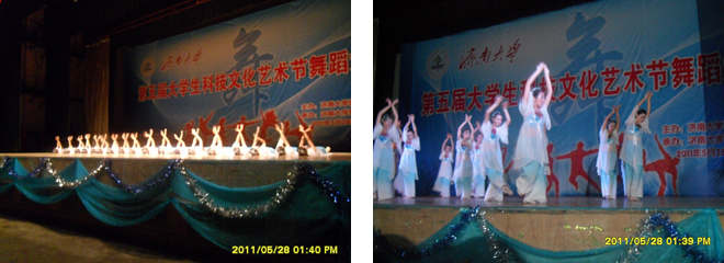 此次比赛中我院团队的选手是由09级、10级共十八名女生组成,她们利用课余时间精心准备,加上紧锣密鼓的排练,将舞蹈的每个动作都完美地展现了出来。舞蹈时长五分半钟,经过层层选拔在比赛中脱颖而出,舞蹈的曼妙柔美与古典音乐的清新自然巧妙结合,令全场的师生们沉浸在美的视觉盛宴中。比赛前,我院领导给予了舞蹈队多方面的支持,学院党委副书记兼副院长陈卫东老师等都时刻关注着比赛的进程,曾多次前往排练现场亲临指导。最终,在全院师生一致努力下我院喜获全校第二名的佳绩。
