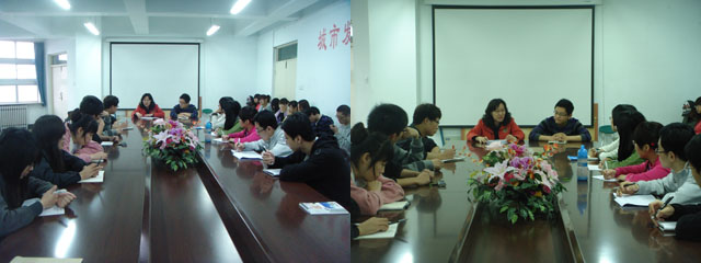 为进一步确保学生会、自律会和记者团换届工作的有序进行,资源与环境学院于4月25日早9时许在实验楼会议室召开了“关于学生会等学生组织换届工作实施意见”的工作会议。会议由学办李蘋老师主持,资源与环境学院08级和09级主要学生干部参加了此次会议。