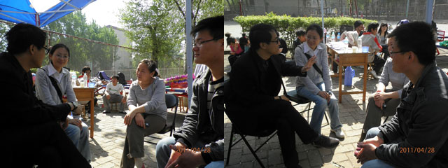 院领导与两位主席的亲切谈话拉近了学生与老师之间的距离。彰显了资源与环境学院的教师与学生之间和谐融洽的优良风尚。