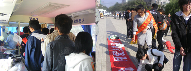 无偿献血活动是“我为人人,人人为我”的社会共济行为。资源与环境学院的同学们都积极踊跃的参与到这项感人的公益事业中,从登记、化验、抽血,同学们始终从容勇敢,充分表现出资源与环境学院学子们的爱心与风采。400毫升的血液,倾注着资源与环境学院学子们的挚真情谊,和对社会公益事业的无限支持。资源与环境学院学生青年志愿者们在献血现场维护秩序,帮助工作人员发放无偿献血登记表及无偿献血纪念品,志愿者们还通过“志愿无偿献血”签字活动向路过的行人和游客们宣传献血知识;现场的气氛高潮迭起,许多路过的学生和警察也参与其中。此情此境成为了泉城广场一道别致而靓丽的风景。