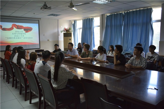 九支队伍的团队代表分别通过PPT及视频展示,向在座师生展示学院2018年暑期社会实践服务团队前往烟台、聊城、济宁、临沂、济南、赤峰、新疆等省内外多地开展实践活动的过程,成员们通过开展理论政策宣讲、创新创业实践、调研实践观察、公益志愿服务、教育关爱服务、助力精准扶贫、环保志愿服务等多项活动,感悟成长与收获。实践队员们畅谈团队组织经验、实践调研方法和个人成长收获,同学们一致认为,只有将“第一课堂”的理论知识与“第二课堂”的生动实践有机结合,注重发挥调查研究的作用,积极深入基层、深入群众,才能真正做到“受教育、长才干、作贡献”。