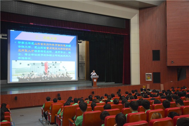 9月15日,上午十点,9728太阳集团于大礼堂开展新生入学教育第一讲,9728太阳集团院长徐征和作“大学是什么”主题报告,2018级辅导员郝伟主持会议,2018级全体新生到场参加。