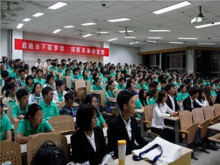 大会开始后,主持人介绍作报告的优秀学生并对他们的到来表示欢迎。优秀学生们从课堂学习、人际交往、参赛活动等方面介绍自己是如何度过这几年的大学时光,他们通过幽默的语言,真实的事例展现自己在大学期间蜕变过程,获得在场学生的钦佩与肯定。在接下来的提问环节中,他们详细解释18级新生关心的专业课、竞赛活动、社团、转专业等问题。最后,他们鼓励在场新生珍惜大学生活,告诫新生切勿读死书,不要局限于课本知识,应珍惜身边资源,主动学习更多知识,不要给自己的大学生活留下遗憾。主持人为本次活动做总结,希望新生从现在开始明确自己的目标,制定合理的学习计划,确定努力方向,充实大学生活,为未来而努力奋斗,并以诸葛亮的名言“非学无以广才,非志无以成学”结束本次大会。