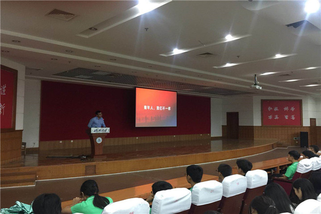 张老师的报告分为十部分,向同学们介绍了作为新时代大学生应有的四种向往。首先张老师引用不同时期的名人名言以及新中国成立以来所取得的各种成就教导同学们向往的第一位是爱国,“忠于祖国,忠于人民”是作为一个当代大学生应有的品质。随后,老师引用北大校长林建华读错字的事例告诫同学们:“广大青年学子要树立远大志向,广大青年要培养奋斗精神做到理想坚定,信念执着,不怕困难,勇于开拓,顽强拼搏,永不气馁。幸福都是奋斗出来的,奋斗本身就是一种幸福。”张老师用“耶鲁村官”秦玥飞的事例回应了当今社会很多现实与浮躁,也更激起了更多振奋和力量。一个人真正的励志,是由心而生,当代青年追求理想的高度决定着中华民族未来的高度,这点明了向往的第二位是励志,做一个奋斗者。习近平总书记在陕北农村插队7年,30里借书,30里还书,而在当今科技创新日新月异的时代,更需要习近平总书记的这股求真的劲头,积硅步以致千里,积怠惰以致深渊,这就是第三个向往——求真。从袁隆平杂交水稻到李小文穿布鞋给学生上课再到林俊德工作到生命最后一刻再到隐姓埋名高伯龙,大家看到的是伟大事业背后的知行合一,这就是大家的第四个向往——力行。