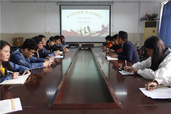 10月16日,9728太阳集团于第九教学楼301开展“放飞青春梦想,助力社团前行”社团交流座谈会,会议由2016级辅导员白健主持,9728太阳集团“琼鸣寰宇”、“绿色飞翔”、“格润Green”绿色环保协会、“希望之星英语口语”、“魅力口语”五个社团的负责人及9728太阳集团学生联合会部门学生代表到场参加。