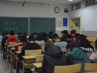 晚上八点,参加活动的人员准时到达。活动伊始,主持人简要地介绍活动内容:昨天是感恩节,借助感恩节的尾声,让同学们观赏有关感恩的电影《七号房的礼物》,感受影片中女孩对于父亲的浓厚恩情。《七号房的礼物》讲述的是父爱亲情的故事,智障人士进入关押着重犯的教导所七号房,原本无情的罪犯被他的父爱所感动,帮助他将女儿带入教导所中。但智障父亲最终为救自己的女儿而被冤死,女儿长大后成为一名律师并为父亲平反冤屈。当智障人士在被执行死刑的前一秒还在哭着喊着求狱长大人说他不想死,他想保护女儿,想陪在女儿身边的时候引爆了所有人的泪点。一个个感人至深的场景,一句句真挚肺腑、扣人心弦的话语都使同学们深受感触。而影片中女孩用自己的言行对感恩做了最好的诠释,为同学们树立了榜样。