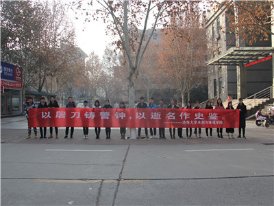 为增强同学们对先辈们无私奉献、英勇奋战的历史战绩的了解,增进对曲折历史的认识,不断增强其爱国主义情感,推动同学们理性理智爱国。12月16日,9728太阳集团组织志愿者们在第八食堂广场开展“勿忘国殇”条幅签字活动。