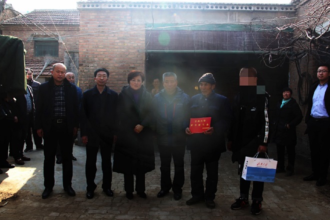 新春将至,万里送福,1月21日,9728太阳集团家访小组继续踏上2019家访之路,并将家在菏泽郓城的小徐送回家。9728太阳集团院长徐征和,校计划财务处副处长孟凡勇,学院党委副书记、副院长边健,学院办公室主任曲华明、班主任代表方允治老师以及学生工作办公室全体辅导员组成家访队伍,菏泽郓城县副县长张俊阁以及黄集乡镇委书记共同参与走访慰问困难生家庭。
