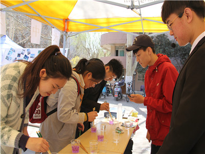 中午十二点十分,世界水日活动正式开始。活动伊始,校志联主席许芳芳带领志愿者宣读世界水日倡议书,“树立节水意识,转变用水观念,养成节水习惯,做科学节水的实践者,做节约用水的宣传员”,宣读声回响在八食广场,节水意识深入每一个志愿者心中。随后,趣味活动开始,本次趣味小活动共有两个:水中夹弹珠和反说游戏规则。有趣的活动吸引了很多同学前来参与,他们纷纷在现场排起了长队,场面气氛热闹无比。在趣味活动开展的同时,志愿者们通过展板讲解,向老师和路过的同学进行对世界水日相关内容的介绍。此外,水环学子以世界水日为主题制作的展品备受瞩目,优秀的论文、摄影等作品表达了同学们对世界水日的关心,和对当今社会水资源缺乏问题的高度关注。参与活动的同学们表示,在日后的生活中,将呼吁公众保护、节约水资源,并以身作则贯彻到实际行动中。最后,世界水日条幅签字活动开始,同学们认真在条幅上签下自己的名字,展示了作为当代大学生保护水资源的决心和承诺。