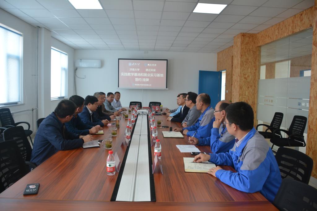 考察期间,我校徐征和一行参观了莱芜德正环保科技有限公司企业园区,并围绕人才培养、师资培训、产学研发等内容进行了全面深入的交流探讨。