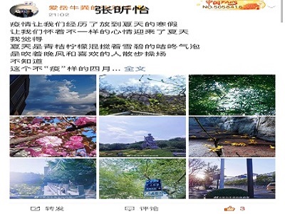本次活动共分为三个方面:“花式宅家,行‘动’起来”;“陪伴是最长情的告白”;“人间最美四月天”。在作品征集阶段,太阳成集团tyc9728水环心动力微博收到了许多同学的关注和私信,同学们利用五一小长假的时间,精心准备并细心挑选自己的优秀摄影作品,同时附上在疫情期间的心得体会,而后将作品发布到微博平台上。活动结束后,经评审团斟酌评比,获奖情况如下:环境1901班获得优秀组织奖;马若雅同学获得一等奖;张译文同学获得二等奖;吕婧菲同学、杨雪纯同学和张凯迪同学获得三等奖。获奖选手和获奖班级分别获得相应的到梦空间加分,同时,获奖作品已在9728太阳集团璧水环林微信公众号、自律会心健部太阳成集团tyc9728水环心动力微博展出。