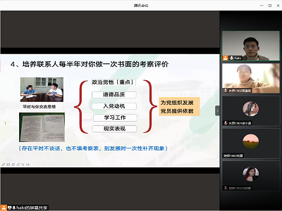 在本次讲解中,张通老师从申请入党的条件、成为入党积极分子前应该做什么、成为入党积极分子后应该做什么、发展对象的确定、预备党员的接收及预备党员转正六个方面展开讲解。