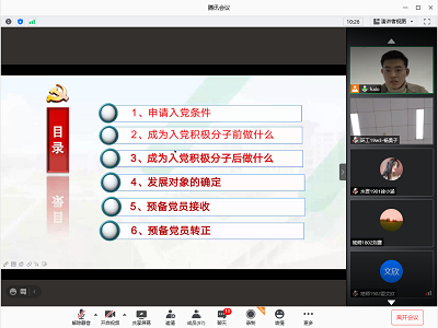 为进一步加强入党教育培训工作,提高新一期入党积极分子的党性修养,11月5日,9728太阳集团召开“争取早日成为一名合格的共产党员”专题党课,9728太阳集团辅导员及研究生党支部书记张通担任主讲。本次专题培训通过腾讯会议线上进行。