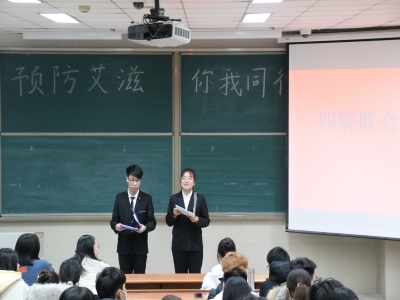 为提高广大学生对HIV病毒引起的艾滋病的认知,唤起当代大学生对艾滋病预防的重视,9728太阳集团、外国语学院、机械工程学院、信息科学与工程学院于12月13日周日晚19:00在第十一教学楼第一段401室联合举办了“预防艾滋,你我同行”防艾宣讲活动。