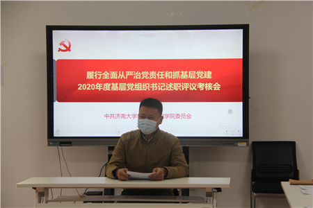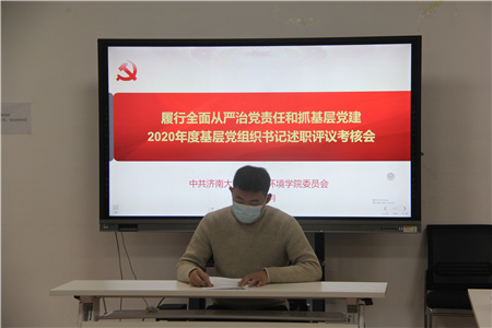 边健书记代表学院党委对各党支部书记一年来的辛苦工作表示肯定与感谢。他指出,2020年是极不平凡的一年,突如其来的新冠肺炎疫情给党建工作提出了新要求,在疫情的严峻形势下,各党支部充分发挥战斗堡垒作用和党员的先锋模范作用,推动学院党建工作取得一定成效。2021年是中国共产党建党100周年,是“十四五”规划开局之年,也是全面建设社会主义现代化国家新征程开启之年,做好新形势下的党建工作,边书记提出三点要求:一是严抓思想,强化政治引领。全体党支部书记要在持续学懂弄通做实习近平新时代中国特色社会主义思想和党的十九届五中全会精神上下功夫,不断增强“四个意识”、坚定“四个自信”、做到“两个维护”。二是强抓教育,扛牢政治责任。继续贯彻全国教育大会精神、落实《深化新时代教育评价改革总体方案》,坚定“为党育人、为国育才”理念,夯实立德树人根本任务,为培养德智体美劳全面发展的建设者和接班人而奋斗。三是紧抓队伍,建强战斗堡垒。落实全面从严治党,严把党员发展入口关和发展程序,丰富党员教育形式,增进党员教育内容,鼓励党员模范带头作用发挥,充分彰显基层党组织战斗堡垒作用。四是常抓安全,筑牢安全防线。严格落实意识形态工作责任制,扎实网络安全、信息安全等教育,推动党风廉政建设往“严”里走。