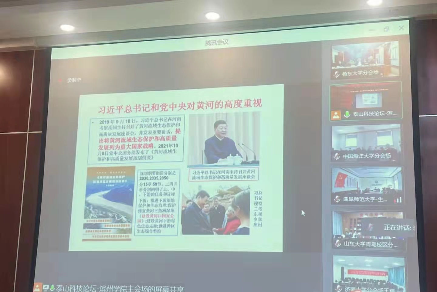 中国工程院院士、中国科学院国家环境光学监测仪器工程技术研究中心主任刘文清教授,美国科学院院士、中国科学院上海植物逆境生物学研究中心主任朱健康教授,山东师范大学逆境植物重点实验室主任、盐生植物工程技术研究中心主任张慧教授,北京师范大学张正旺教授,山东省生态学会理事长、山东大学王仁卿教授,泰山学者青年专家、滨州学院/山东省黄河三角洲生态环境重点实验室副主任夏江宝教授等专家学者也以“黄河流域生态保护和高质量发展—黄河三角洲生态保护与恢复”为主题,做了高质量学术报告。