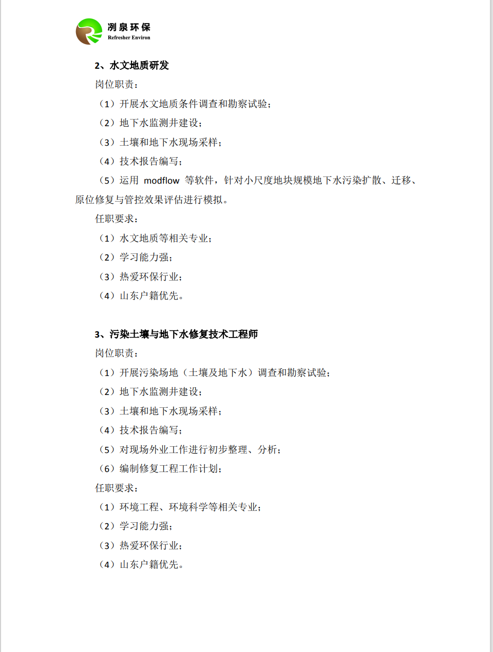 冽泉环保招聘信息