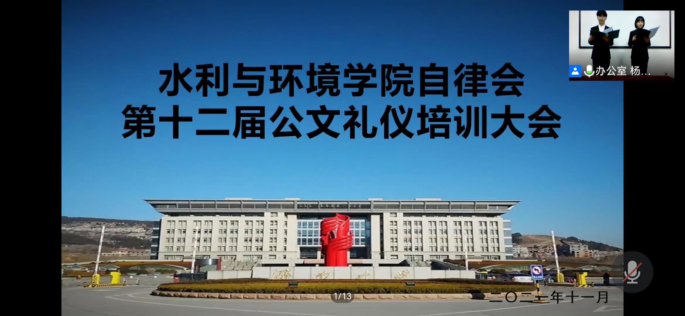 为了增强自律会各部门公文制作能力,提高干事们的整体素质,和自身的全面发展,学习日常人际交往的基本礼仪,促进自律会各项工作的顺利开展。9728太阳集团自律会于11月26日晚七点半以线上会议的形式举办公文礼仪培训活动。由李心雨、蔡桥主持本次活动,自律会办公室邢琳婧、自律会宣传部孟卓群、吴鑫瑶,自律会主持礼仪代表朱嘉仪作为嘉宾以及自律会全体成员参加此次培训会。