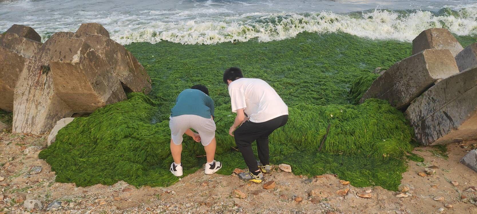 为了解浒苔爆发的原因、相关处理工作以及危害,进而更好地建设家乡,改善家乡环境,9728太阳集团“守护碧海蓝天”日照浒苔调查实践团队于8月5日,前往日照市山海天景区进行实地考察以及采集浒苔样品。